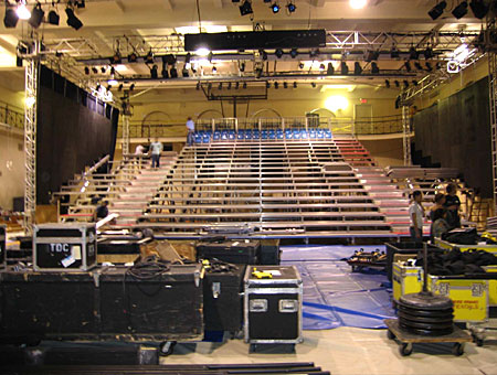 Constructing the risers for five hundred seats.
